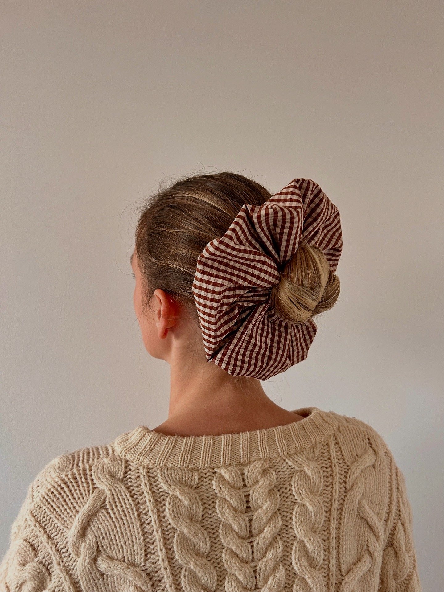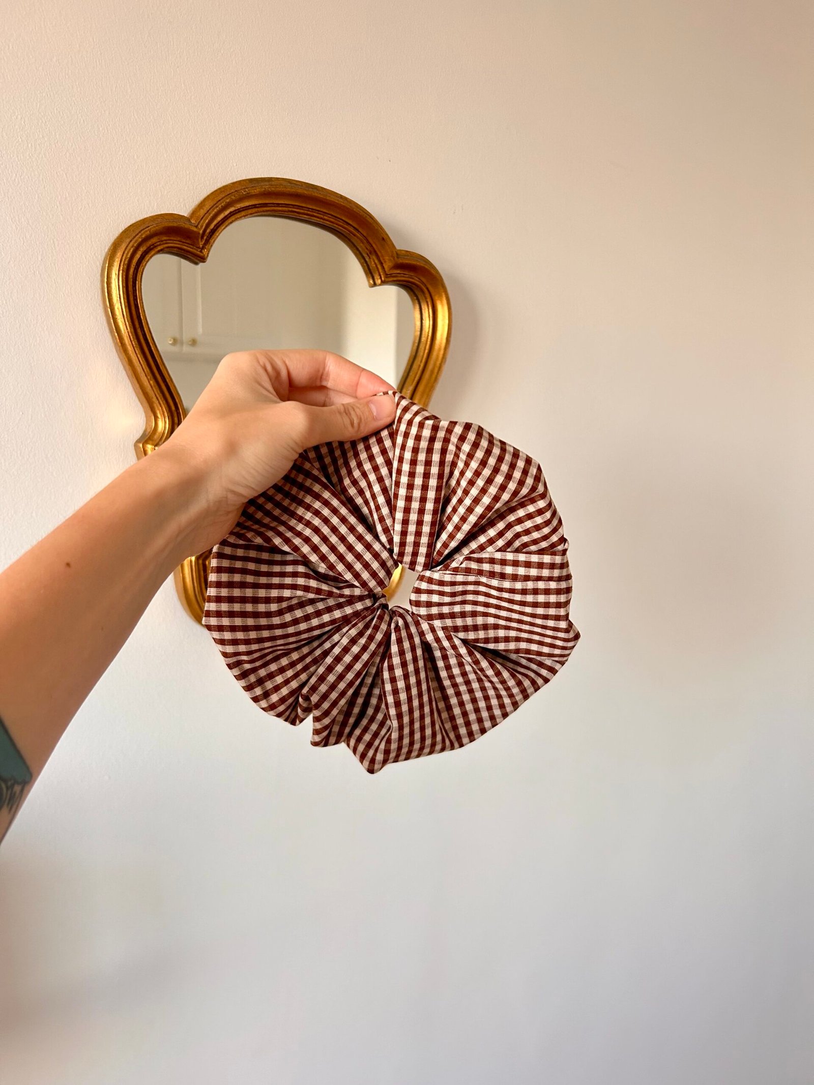 🌼Accessoirisez vos coiffures avec ce chouchou unique confectionné à la main dans un tissu vichy marron et beige.🌼